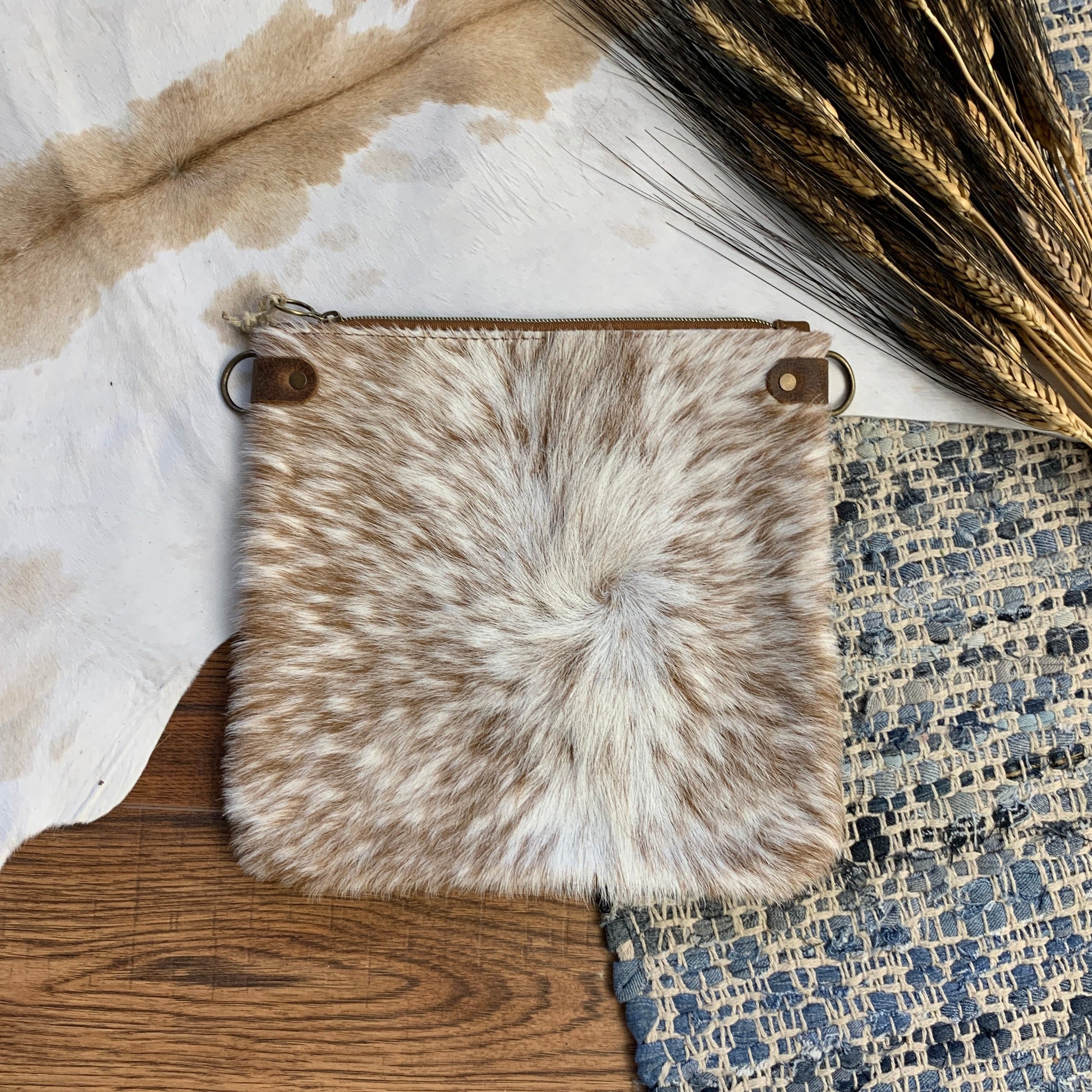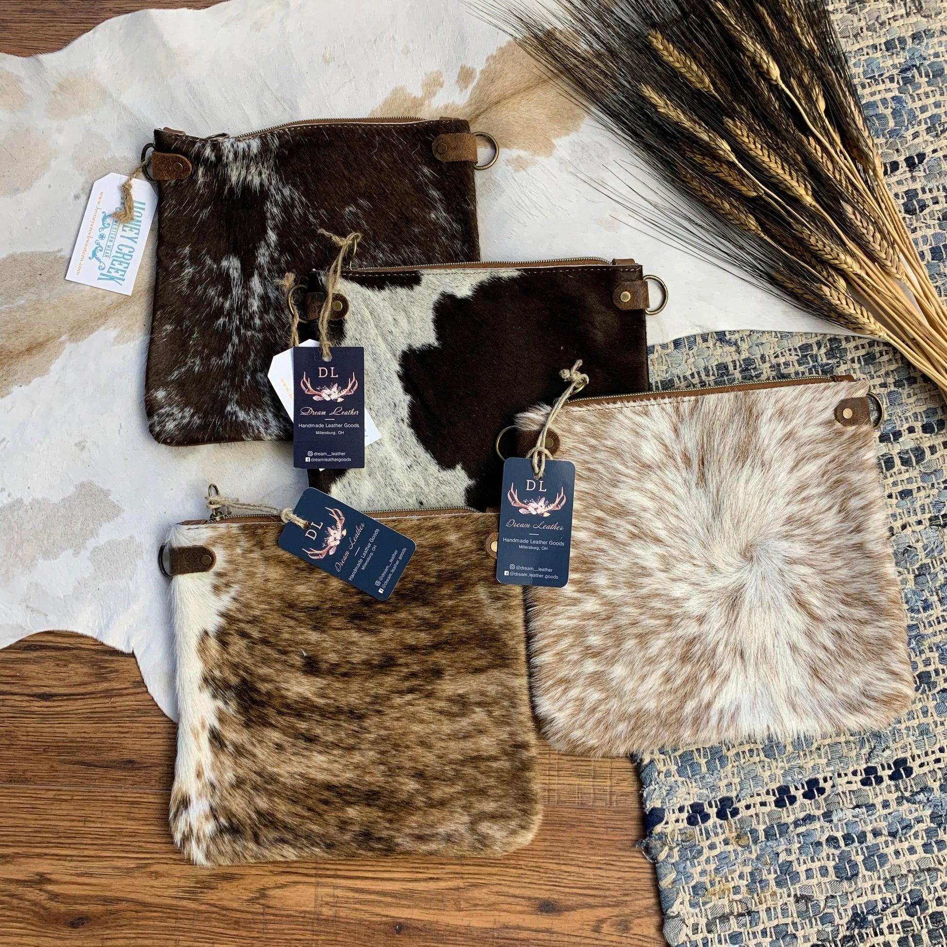This size of zippered pouch is one of the top 2 sellers in the Dream Leather line. Large enough to carry most purse essentials, but it's low profile make it the perfect bag for your on-the-go lifestyle. Each bag is unique and one-of-a-kind. Only the toughest hardware is used so these bags are made to last. Choose what type of bag you want, but don't forget the strap! This size is small enough to carry as a handbag with the wristlet.
