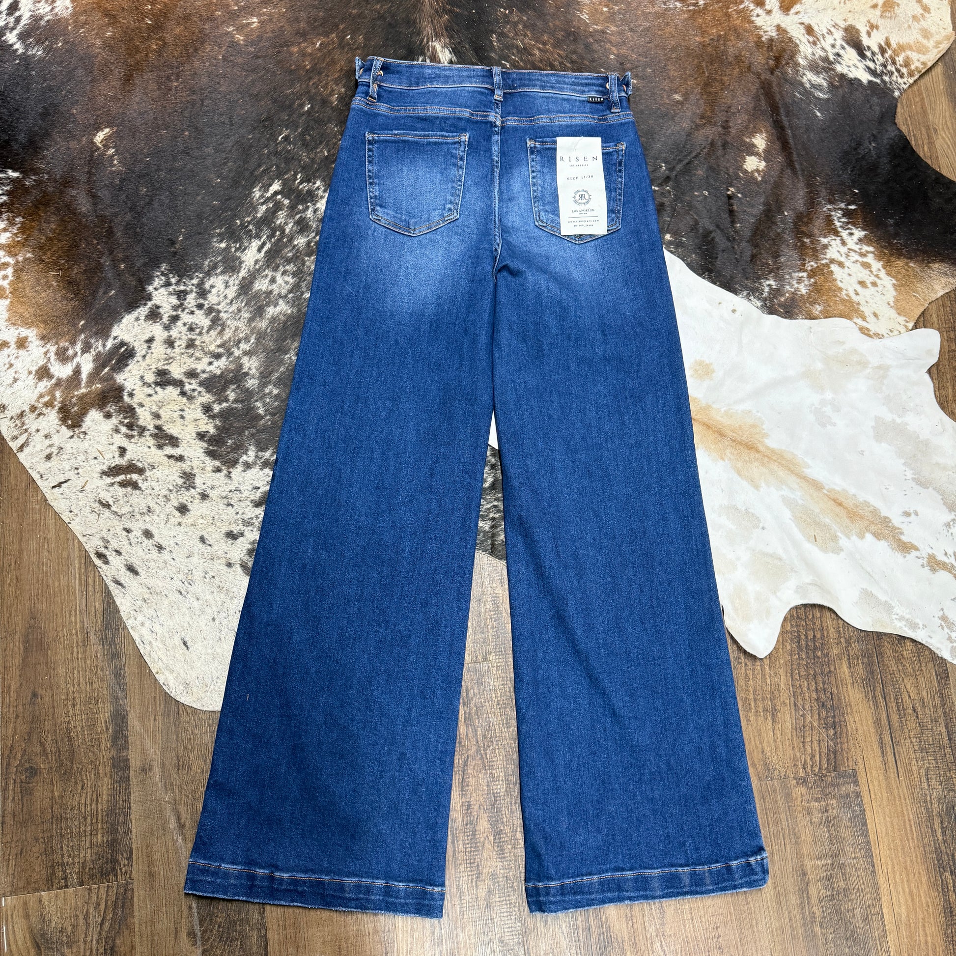 Our favorite Risen Brand has really done it with these high rise, wide leg jeans that features TUMMY CONTROL. And, what's that? Oh, an adjustable waistband. No more waistband gaps ya'll! And the tummy control really tucks all the fluffy bits in nice and comfortably. All this plus they're the classic dark wash.